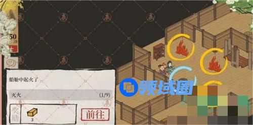 7、点击火堆进行灭火,水桶不足时可点击水缸进行补充;