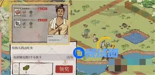 6、点击肉摊给狗儿找点吃食,点击肉摊,消耗新鲜猪肉、小鱼干;