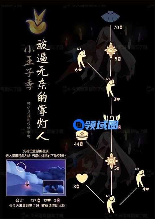 点灯人先祖是最近将复刻的先祖,可在点灯人先祖兑换的物品有动作、帽子、斗篷,我个人认为其中最好看的是黑斗篷,不仅穿在身上很拉风,并且还有型,每个人的看法不同,按照自己的喜好来兑换即可。点灯人先祖在剧情中的设定是勤劳又刻板的一个人,非常守规矩。据了解他会在下周四复刻,不知道真的假的,新手玩家可能不知道他的所在地在哪,其在禁阁星漠处,兑换完所有的物品一共需白蜡烛x127、升华蜡烛x2、爱心x13,想获取这些物品的玩家可尽早准备,接下来为大家介绍一下光遇点灯人先祖位置一览。