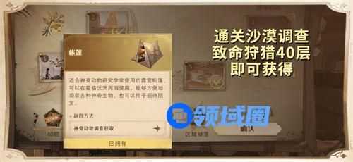 1、通关沙漠调查致命狩猎的40层可以获得道具-帐篷,帐篷可以在规定区域创造一片独立于外界的空间。
