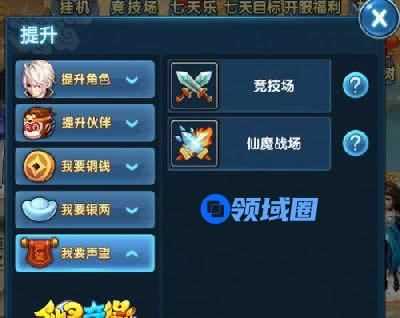 在 《仙灵奇缘》中,声望很大一部分程度是和战斗力有关的。为什么这么说呢?玩家在游戏里可以通过完成竞技场与仙魔战场任务赚得声望,也就是说,只要玩家打得 过,那么声望自然不会少。快速寻找竞技场以及仙魔战场任务可以直接点击画面右方提升按钮,点击成长宝典即可选择“我要声望”来做任务。