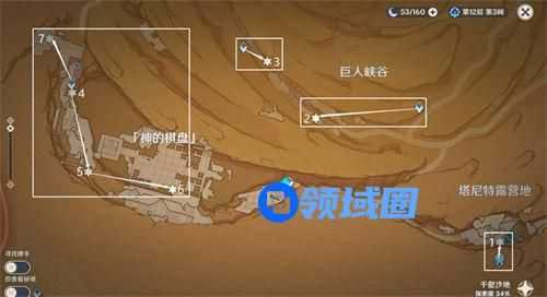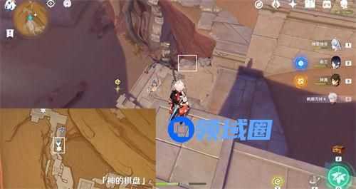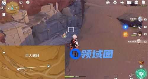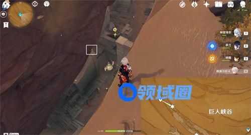 3、蓄水阶池2在巨人峡谷锚点,往地图西方向走,朝地图的西南方向看按图示解密;