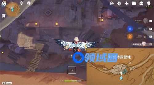 2、蓄水阶池1:如下图所示,前往塔尼特露营地神像后往北方飞,到图中四叶印的位置,往地图的西北方向看,按照图示步骤完成解密即可。