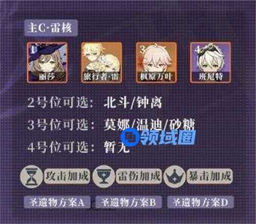配队一:丽莎+旅行者·雷+枫原万叶+班尼特