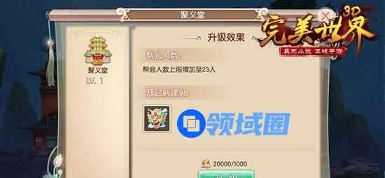 以上是领域圈小编为您整理提供的游戏攻略,希望这个攻略对您有所帮助,请时常关注领域圈《完美世界3D》专区,领域圈将为您提供最新的攻略。