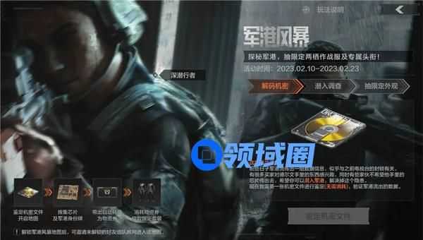 通往军港之路任务完成后,全新军港地图正式开启!看似风平浪静的军港地图,一场新的风暴正在形成。探秘军港,完成风暴委托,兑换深潜物资券,有机会抽取限定外观——深潜行者套装!