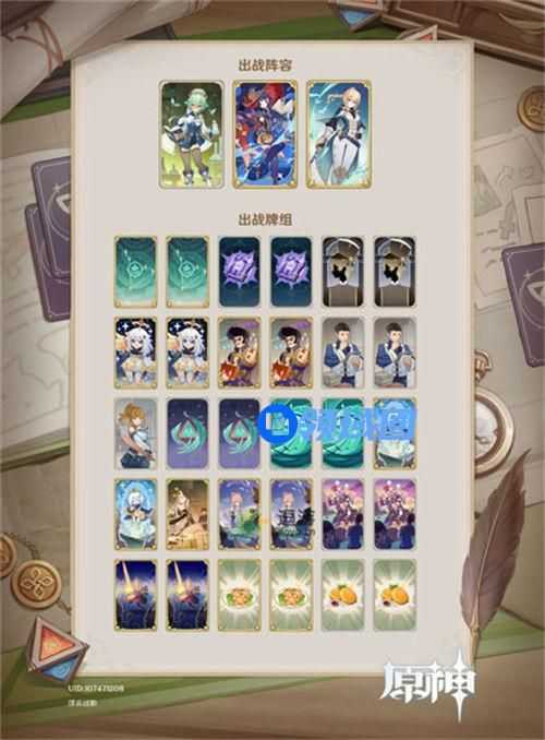 3、砂糖天赋牌是整套牌核心中的核心,其次是教官圣遗物。用天赋牌开大染水后,后续所有回合我们的所有水伤都可以+1,这个是非常恐怖的加成,如果手牌没有砂糖天赋牌甚至可以先不开大,切到琴打下伤害都行