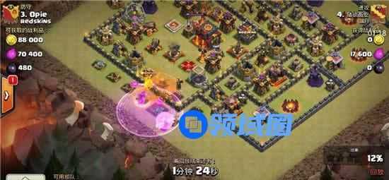 为了避免法师塔旁边是双炸,猪分为两路来下,最后证明是虚惊一场,因为全部四个大炸弹全部在中路,故而很轻松野猪配合中路部队消灭全部防御,整场用时不到2分30秒。