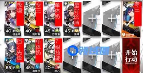 其他干部:桃金娘/极境/琴柳,挡2先锋,单奶x2、技能7拖动特殊重装