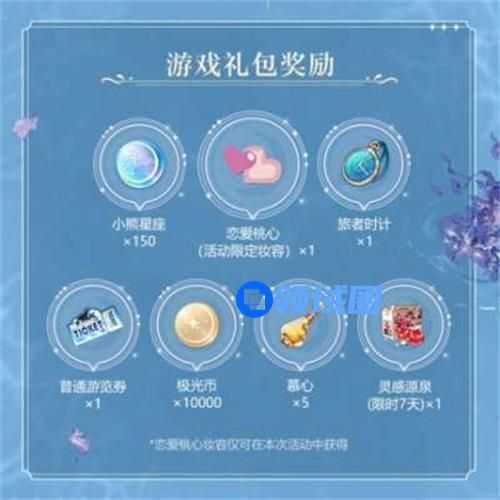 前往门店,在门店店员指引下,通过体验机参与心动好礼小游戏,完成游戏即可领取:【小熊星座 x150、恋爱桃心(活动限定妆容)x1、旅者时计x1、普通游览券x1、极光币x10000、慕心x5、灵感源泉(7天)x1】。