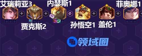 阵容组成:艾瑞莉亚、贾克斯、孙悟空、盖伦、菲奥娜