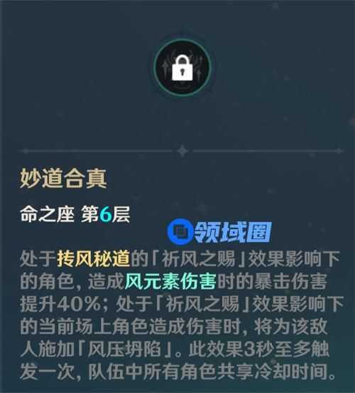 砂糖的6命是触发元素转化后,给队友提供对应20%的元素伤害加成,跟万叶的天赋是同样的效果,至少数值少一些,这也是最早万叶“小砂糖”称号的由来。