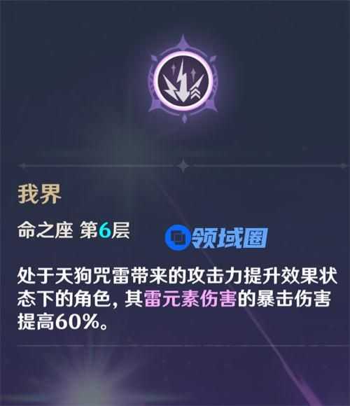 九条裟罗是雷系专辅,满命的效果是给受到攻击力加成的角色增加60%的雷元素暴击伤害,这个提升是非常恐怖的,因此满命九条又称“雷系外置爆伤头”、“雷系第7命座”。因此我更加推荐在九条有了6命之后,再去培养更好。当然在没有满命的时候,九条也是可以练的,因为她的E技能是给场上角色增加攻击力,和班尼特Q类似。