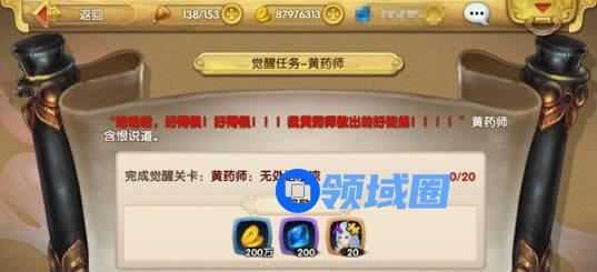 之后觉醒任务每天可以打5次,打够20次之后可以领取相应的奖励,并打开觉醒的第二步。