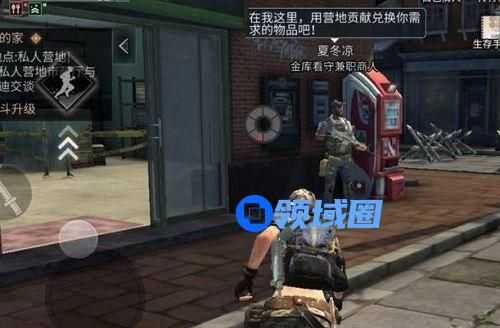 在营地里,有独特的场地可以互动BANK在建筑的前面,我们可以看到特殊的商人NPC夏冬凉,靠近对话。