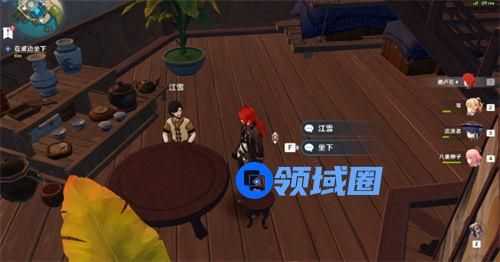 2、走到厨房旁边的桌子旁坐下,江雪就在边上,坐下后自动进入剧情;