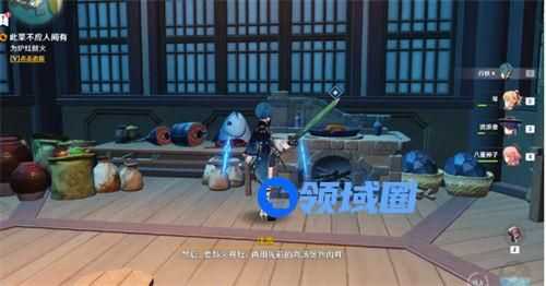 5、然后开始烹饪,往锅中倒入清水换上水元素角色,攻击厨房的炉灶即可注入清水;