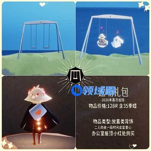 光遇情人节秋千多少钱?售价128R,购买情人节秋千礼包获得。情人节秋千是情人节的限定放置背饰,如果现在玩家还想得到的话,赶紧前往商城中购买获取,不然下次复刻就要再一段时日了,也不清楚是什么时候返场,目前离活动结束已经没剩下几天了。有了这个情人节秋千,就可随时两个人一起休闲的待机了,是个放松的好形式,玩家对着角色荡秋千的样子注视一会,本就急躁不堪的心情也会随其荡去,细心的玩家可能会发现,使用荡秋千一会就能出现爱心了,接下来为大家介绍一下光遇情人节秋千价格一览。