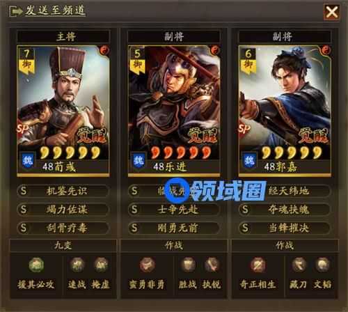 加点:Sp郭嘉全智、乐进10速度剩余武力,Sp荀彧15速度剩余智力。