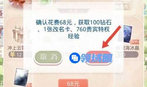 3、改名卡礼包售价68元,购买改名卡礼包后可以获得1张改名卡、100钻石和760贵宾特权经验。
