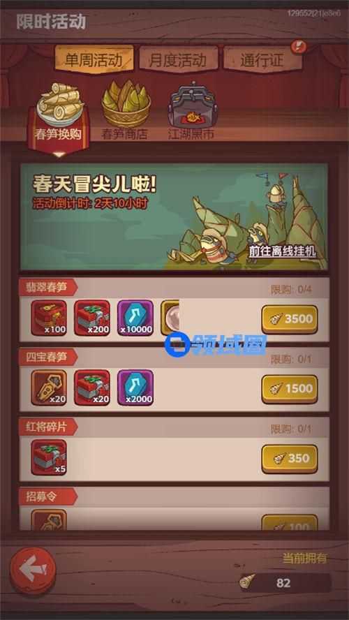 咸鱼之王是一款放置型的休闲游戏,一开始你只知道它是个连客户端都没有的小程序游戏,接触并上手后,你就能明白这款游戏的有趣地方了,其中有许多三国时期的武将可获取,前期你是一个人孤军奋战,随着关卡的推进,系统会赠送几个咸鱼形象的三国武将给你,和你一起并肩作战击退强敌,游戏节奏快,你甚至没有思考太多问题,点击武将上阵自动战斗,轻松解放双手,随时随地挂机领取收益的特点,让人非常喜欢,你不用花很多的时间在培养角色上面,接下来为大家介绍一下咸鱼之王春笋换购建议一览。
