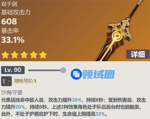 元素战技命中敌人后,攻击力提升20%,持续8秒;受到伤害后,攻击力提升20%,持续8秒。上述2种效果角色处于队伍后台时也能触发。此外,不处于护盾庇护下时,生命值上限提高32%。