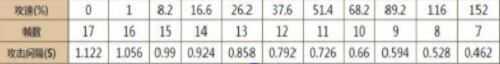 攻速(%):2/16/26.2/37.6/51.4/68.2/16/116/152/11/11/11/11;