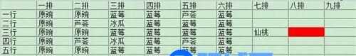 蓝莓必须要三阶,没有可以用蚕豆来替代。如果有五阶大嘴花,可以替掉金蟾菇,第八列可以再加一排金蟾菇。图中打红色的地方说明那里有兵器架出现,会顶飞植物。boss关记得给仙桃开大即可。图中冰瓜负责灭火。给毒影菇放大毒boss。注意!不要在boss解毒前再次放大,不仅浪费能量豆而且会给boss提前解毒(毒影菇的毒液无法叠加)