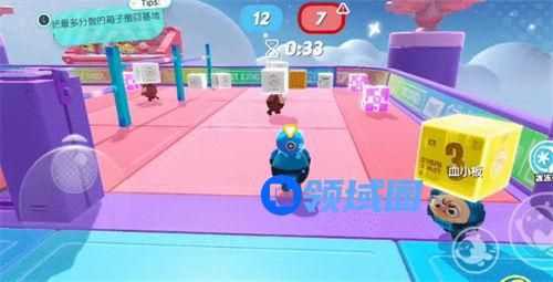 除此之外,我们还可以去到对方的场地干扰对手,不但可以扔道具扔蛋仔,还可以直接把场地上的方块拿走,变成己方的分数哦~
