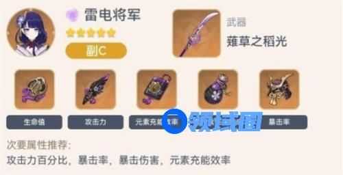 雷电将军五星武器首选特种武器草稻光,可发挥良好的伤害,其次可选择天脊,虽然效果较差,但也更适合雷神。