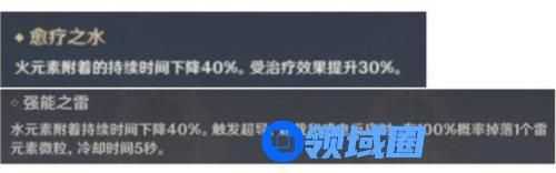 双雷在雷元素相关反应中提供能量回复,可以弥补操作失误造成的循环混乱。双水提高了治疗效果,整个团队没有主盾或主奶角色,但秋季雨帘剑可以提供治疗(毕业秋季雨帘剑可以回复3000或4000多个血容量),也可以提高容错率。