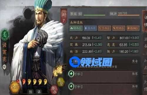 从面板属性来看,诸葛亮的智力增长值高达3.统率增长值2.36也超过了大多数武将,也很有抵抗力。武力增长值和速度增长值虽然相对较低,但并不影响诸葛亮的实力。