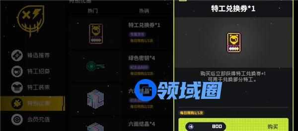 2、我们看到在特别优惠中可以购买特工兑换券,每天限购一次。