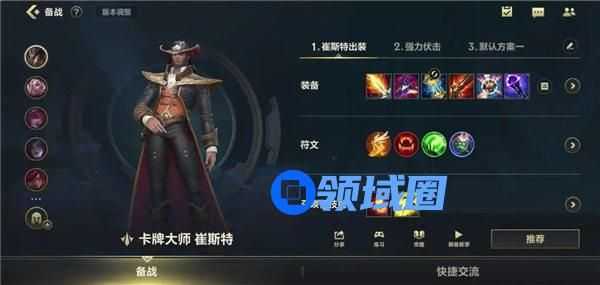 因为崔斯特是Gank节奏的发动机,所以他需要优先出巫妖之祸和灭世者之帽提高爆发输出,穿戴明朗之靴转中娅沙漏,中期出疾射火炮加强黄牌攻击距离,后期出无限法球和虚空之杖进一步补足秒人能力。