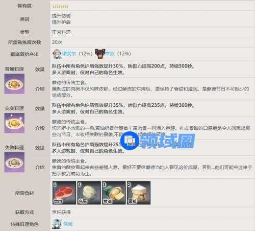 食谱获得方法:蒙德城声望系统(人物:赫塔)7级奖励获得(食谱)。