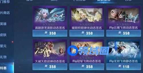 当我们点击商场下面的特价时,我们会看到五位英雄的皮肤签名。