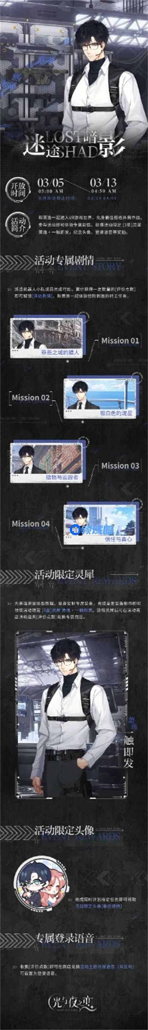 光与夜之恋是一款非常优秀好玩的女性向恋爱养成游戏,这款游戏中有着非常丰富的游戏玩法内容,玩家都能够在游戏中不断的挑战解锁,多种丰富的剧情故事内容都在等待玩家的自由冒险体验。光与夜之恋游戏中有着非常丰富的活动内容玩法,玩家可以根据活动的任务提示在游戏中尽情的享受游玩,不仅能够收获快乐,还能获得丰厚的游戏道具奖励,近期游戏中将会上线迷涂暗影活动许多玩家还不是很清楚这个活动的具体玩法内容是什么,该怎么玩?下面就由小编给大家分享光与夜之恋迷涂暗影活动玩法攻略,感兴趣的小伙伴们快来一起看看吧。