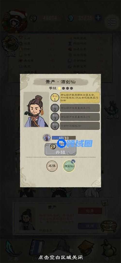 如果五行有两个天机,萧严有了酒剑仙化身可以选酒剑仙。血越少防越高,暴击率越高,自带回血( 1级化身每次可以回六分之一血)。再搭配金蟾、玄铁甲,合成魔缚妖索后就可以在怪堆里洗澡了,容错率非常高。