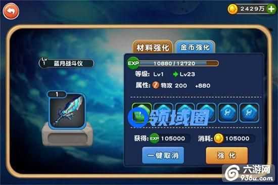 装备还可以强化升级,强化分为材料强化与金币强化,消耗对应资源,便可以大大提升装备等级,战力也会随之提升。