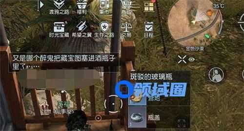 3、房子前面,露台位置,有一个酒瓶子,打开酒瓶子获得露营地藏宝图。