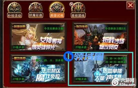 入口:活动—>英雄试炼—>单人竞技
