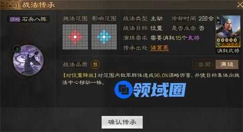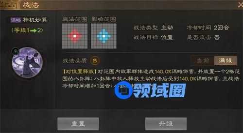 [对位置释放]对范围内敌军群体造成140.0%谋略伤害,并放置一个2格范围的八卦阵:八卦阵中敌人释放主动战法后受到140.0%谋略伤害,且战法冷却时间增加1回合;八卦阵持续2回合。