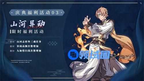 周年庆版本期间限时山河志形外三魂任务开启、限时异闻高额次数九如塔扫荡次数增加