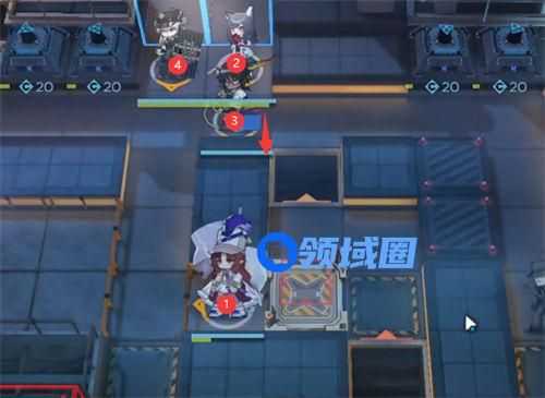 然后如图所示位置部署泥岩吃无人机伤害,再撤退先锋,如图所示在右侧部署闪灵(向下)→ 艾雅法拉(向下)→ 煌(向左),随后挂机即可。