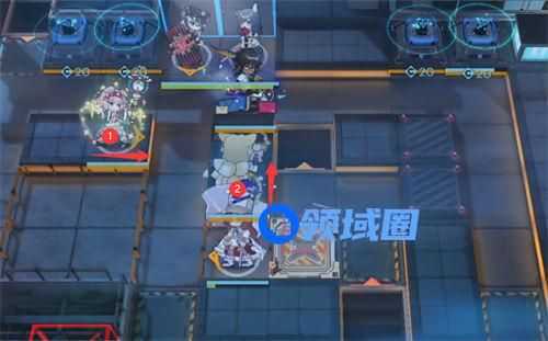 这里需要注意如果你的铃兰血量比澄闪要少(全场最低血量),那么铃兰要和澄闪换个位置去吃沙暴。塞雷娅可以奶到下图1号位的高台所以不用担心暴毙。