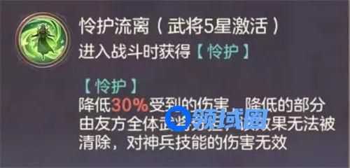略有小成:[怜护]降低伤害提升至60%(50%提高为60%),发动时对友军伤害减少25%,分担至女性武将时伤害减少50%(没有变化)。