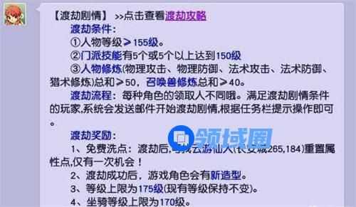 以上就是梦幻西游渡劫条件详情攻略的全部内容,更多精彩内容攻略请持续关注领域圈,小编将持续更新更多相关攻略。