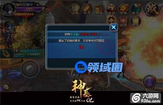 点击某人选择【切磋】后,即向对方发送切磋请求,并有30秒的等待回应时间,若对方同意,即可开始切磋,进入切磋场景;若对方拒绝或30秒内没有回应,则切磋取消。