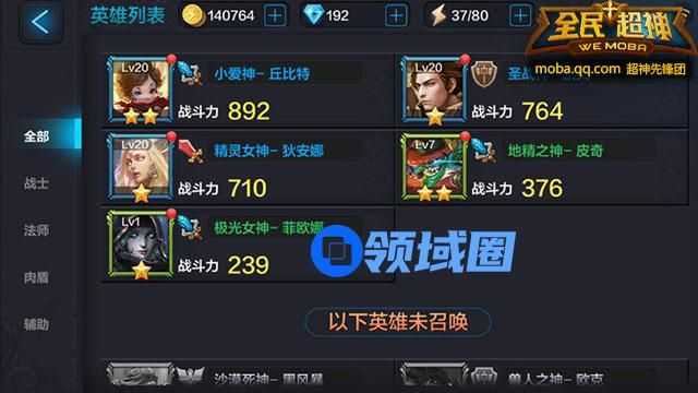 H板块:玩家当前的英雄组合阵容,以及总的攻击力。点击英雄头像可详细查看英雄的资料,以及对英雄进行各种养成操作。