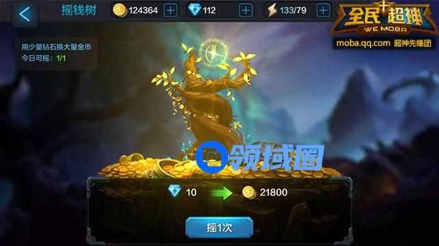 B板块:从左到右分别是金币、钻石和体力的具体数值,点击数值后的“+”,能进入如何快速增长货币或体力的相关页面。如点击金币,会进入摇钱树系统,消耗钻石可兑换大量金币。
